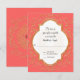 Matching RSVP Response return by mail card including white envelope. NOTE: This is a flat printed invitation, there is no real glitter or metal foil used. Effects are graphically produced. DESIGN COLLECTION: Beginning with hand drawn script swirl calligraphy flourishes that have been turned into a graphic glitter effect and paired with a double border quatrefoil style frame also in golden shimmery glitter effects. Inside the frame and behind your easily customised text template is a sunburst hand drawn line design. On the reverse side is a place to put your monogram initial inside the glittery starburst design. This invite is the perfect marriage of sweet, romantic sentimental design and modern elegance. Easy to customise for any occasion and a complete set of products are available. COLORS: Bright coral orange pink, creamy off-white and digital gold glittering look.