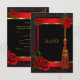 RSVP Reply Birthday Party Red Rose Gold Black Card