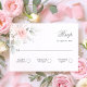 Simply elegant floral bouquet design in watercolor (watercolour) pastel green greenery, blush pink, dusty rose, white flower roses / cherry blossoms on white background and dark grey letters. Delicate RSVP / REPLY / RESPONSE cards for budget wedding or shower party.