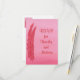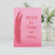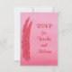 Painting of two red and pink feathers on a blended pink background, with placeholders for RSVP info, printed on two sided note cards. Easily customise the text on the template forms.