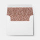 Rose gold pink glitter accents the back flap and inside of this A2 size RSVP envelope that coordinates with our "Rose Gold Glitter Invitation Suite" but it would work well with any rose gold or blush pink quinceanera, sweet 16, birthday, baby or bridal shower invitation response card.