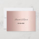 Back: Names of the bride and groom, and the date of the wedding. A rose gold background. Black text.