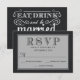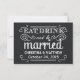 Eat, Drink, and be Married -- Vintage style rustic country deluxe wedding invitation RSVP Response Cards -- Swirly, curly scrolls and old-fashion woodcut typography in radiant white on black dyed burlap background. Add the bride and groom names and wedding details in this easy to use template. Elegant but fun and whimsical, retro hand-written style can be can be easily modified for your formal or semi-formal wedding themes. Casual modern country style is perfect for trendy rustic weddings with a fun touch of sophisticated charm for traditional couples. Please contact us for help with customisation if you need additional room for your wedding details. Other sizes and styles available. Note: This is a paper card with a PRINTED image of burlap for decorative effect. There are no real or raised textures.