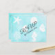 RSVP Oceanic seaside seashell blue and teal beach Themed Wedding postcard.
