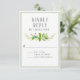 Hand painted watercolor seeded eucalyptus leaves and green foliage are paired with a clean simple typography text design and a hexagonal back side pattern. Clean. Modern. Natural. This RSVP Response card coordinates with the wedding invitation suite and is for your guests to fill out and return. Easily customise your information in our simple template. Modern, simple styling with a serif, all cap font design.