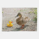 A funny photo of a yellow rubber duck looking at a mother mallard duck. "Mum, is that you?" This cute bird picture would be fun gift for any bird lovers or mothers.