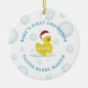 Rubber Duck Baby's First Christmas Photo Blue Ceramic Ornament