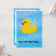 Squeak squeak goes the rubber ducky. Cool personalised design with a bright yellow character and a blue bubbling water background. Perfect for bath time, pool time or just having fun.