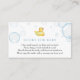A book request insert card for baby shower. Featuring rubber ducky and bubbles with poem: "ONE SMALL REQUEST, WE HOPE NOT TOO HARD
