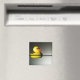 A cute shot of a rubber duck floating in water against a silver background.