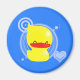 Cheerful smiling yellow duckie on abright blue magnet!