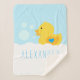 Quack, quack! The Rubber Ducky With Blue Heart Sherpa Blanket designed by Enchantfancy Design Company features a cute yellow duck with a blue heart on his wing. The yellow rubber ducky is floating on bath bubbles. Personalise with your choice of name! This blanket makes an adorable baby gift.