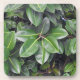 Bring in the green with these rubber tree leaves. The tropically lush artwork on this Coaster is made from an original closeup photograph by MaeFlowers of a rubber tree. The leaves are smooth and shiny, in natural shades of green, from a lighter, yellow green in the sunlight to a deeper green in the shadow areas. The leaves are plump and stiff looking with their light yellow green stems.