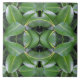 Go green with the original rubber tree pattern on this 6” Ceramic Tile. This tropically lush design was made from an original closeup photograph by HomeWare of the leaves of a rubber tree. The leaves are smooth and shiny, in natural shades of green, from a lighter, yellow green in the sunlight to a deeper green in the shadows. The leaves are plump looking and their light yellow green stems add a linear pattern to the photo design.