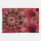 A sparkling fractal design with ornate spirals of dark and vivid red, overlaid with gold filigree like metallic seashells and studded with glittering rubies.