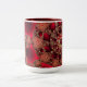 A sparkling fractal design with ornate spirals of dark and vivid red, overlaid with gold filigree like metallic seashells and studded with glittering rubies.