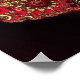 A sparkling fractal design with ornate spirals of dark and vivid red, overlaid with gold filigree like metallic seashells and studded with glittering rubies.