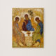 Antique Andrei Rublev artwork/icon depicting the Father, Son, and Holy Ghost seated at a table. The images appear to have angel wings.