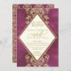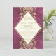 Ruby and gold damask vintage glam wedding invitation set featuring golden damask and elegant ivory diamond centre. Inspired by Vintage hollywood glam, baroque flourish design, this festive burgundy and gold wedding invitation is right on trend with today's most elegant wedding invitation sets with it's bold whimsical standout script text and beautiful formal style.