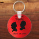RUBY ANNIVERSARY-KEYCHAIN--ON BRUSHED RUBY--GENT AND LADY IN SILHOUETTE -YOU CAN CHANGE BACKGROUND COLOR---ADD YOUR OWN YEAR AND DATE OR QUOTE--MAKES A GREAT GIFT.