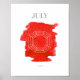 This art print poster features a ruby red watercolor wash and graphic gemstone outline for the birthstone of July.