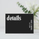 Modern wedding enclosure card featuring a simple and minimal design with bold typography in white over a black background. The colours may be changed to any colours you choose in the design editing tool. This contemporary wedding enclosure card is great for a goth or halloween themed wedding.