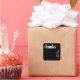 Modern wedding sticker featuring a simple and minimal design with "thanks" in bold white typography over a black background. The colours may be changed to any colours you choose in the design editing tool. These contemporary wedding stickers are great for a goth or halloween themed wedding.