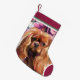 Christmas stocking with Ruby Cavalier king charles spaniel art design. Vintage floral. Holiday stocking.