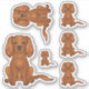 Destei's original cartoon illustration of a cute ruby colour Cavalier King Charles Spaniel breed dog who is sitting. The design is placed six times on the sheet in different sizes.