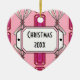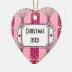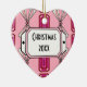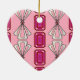 Red and pink stylised emerald cut graphic rubies create stripes alternating with a fun geometric art deco inspired motif in the elegant and sophisticated pattern decorating this ornament.