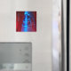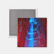 This magnet is a picture of Ruby Falls - a waterfall inside a cave! The lighting gives the cavern wall a red glow while the falling water glows a neon blue. The name of this tourist attraction in written in a light blue font in the upper left corner of the picture.
