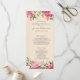 Elegant and modern ruby pink peony floral wedding program with painted watercolor flowers in pink and peach and lush green foliage against an ivory background. Simply add your wedding details. If you need any help or matching products, please contact us through our store. We're happy to help you make your wedding the most beautiful day!