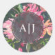 Ruby Pink Peony Floral Botanical Monogram Classic Round Sticker