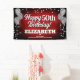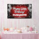 Fun banner sign for indoors or out, featuring festive silver metallic balloons on both sides of the design with sparkly, silver metallic confetti on a rich textured ruby red coloured background for your personalised birthday banner. This product doubles as a wonderful milestone birthday keepsake.