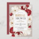 A beautifully crafted bridal shower invitation featuring ruby-red roses and soft white florals,