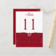 This red and white FAUX embossed floral table number post card with a red FAUX ribbon and a ruby and diamond brooch matches the wedding invitation shown below. You must customise the card for EACH table number that you need, by changing the "11" to each number you need, adding it to your cart, and then repeating the process until you have the correct number of individual cards in your cart. If you have any questions, email niteowlstudio@gmail.com.