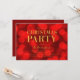 Elegant Christmas party invitation featuring the words "Christmas Party" in faux gold foil against a ruby red bokeh lights pattern background that's perfect for inviting family or friends or even for a corporate business Christmas party. Invitation has a dark red background back side.