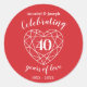 Ruby celebrating 40 years of love anniversary stickers. Simple outline heart stone effect line art graphics ruby red and white 40th Ruby Wedding Anniversary round stickers. Customise with your own fortieth ruby wedding party details. 40th Anniversary is traditionally associated with rubies and the heart symbolises love. Graphics and design by Sarah Trett for www.mylittleedenweddings.com on zazzle.
