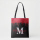 Ruby Red Glitter Drips Sparkles Metallic Monogram Tote Bag