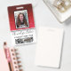 Faux ruby red and black glitter sparkles delightfully behind a photo template with black and white frame. Easily update the name and professional job title for each custom employee badge. There is also space for a company logo—delete to leave blank. Backside features more faux glitter and an image template perfect for employee bar codes. Available in many other styles and colours.