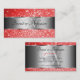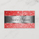 Ruby Red Glitter Silver Luminous Stars Monogram Business Card