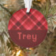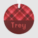 Ruby Red Plaid Monogram Circle Acrylic Ornament