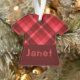 A monogrammed t-shirt shaped Christmas tree ornament featuring a beautiful diagonal plaid pattern design in ruby red. Create the perfect customised gift by clicking the “personalised” button to add a name or custom message in the provided template field. Select the “Edit using Design Tool” link to change the font, text size and more.