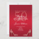 Beautiful feminine, music and dancing themed birthday party invitation. With a pretty ruby red colored glitter background with a ruby red color background and a pretty frame encasing a stunning rhinestone jewel diamond stiletto high heel and treble clef music symbol. The reverse has the same background with 2/two small high heel shoes in the bottom corners. This example has been used for a birthday but is suitable for any event...Retirement, Bridal Shower, Graduation etc.
