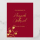 Add an elegant touch to your wedding invites with this ruby red wedding invitation. Event details are on the back of the postcard. Real foil features a raised texture. Just change the text to fit your needs. Festive Hearts design. Use the template to personalise.