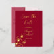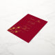 Add an elegant touch to your wedding invites with this ruby red wedding invitation postcard. Real foil on the front features a raised texture. Just customise the text to fit your needs. Festive Hearts design. Use the template to personalise.