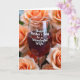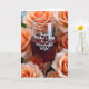 This greeting card shows a clear drinking glass centred in the scene, surrounded by layers of soft roses in blush, cream, and muted autumn tones 🌼. The background flowers fade into a gentle blur, creating a hazy halo that keeps attention on the glass and the cosy closeness of the arrangement. Inside the bowl of the glass, a deep ruby drink catches the light, and the red glow seems to echo the warmth of the petals like a quiet toast between two people ❤️. Across the front of the glass, a short dedication appears in flowing cursive-style lettering, standing out in bright white. The words sit roughly mid-glass, following the curve of the bowl so the message feels nestled into the scene rather than floating above it. Soft, diffused lighting brings out tiny highlights on the rim and stem while the rose petals look velvety and gently shaded. The final look features a bright white message centred on the glass against the rich red liquid, framed by softly blurred roses in pale pink and cream.