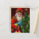 This elegant Santa, dressed in traditional red, is delivering Christmas gifts and a candle lit tree. It is a beautiful image for holiday decor and correspondence. Santa wishes everyone a Merry Christmas in golden lettering while a shining Christmas star sparkles in the background.