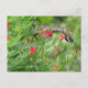 Postcard design features a photograph of a Ruby-throated Hummingbird drinking from Cypress Vine flowers.