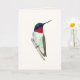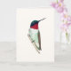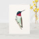 The ruby-throated hummingbird (Archilochus colubris) is a tiny bird with black mask, green crown and bright red throat. It can be found in open woodlands, forest edges, grasslands, meadows, and in parks, gardens, and backyards where they often visit hummingbird feeders and tube-shaped flowers.